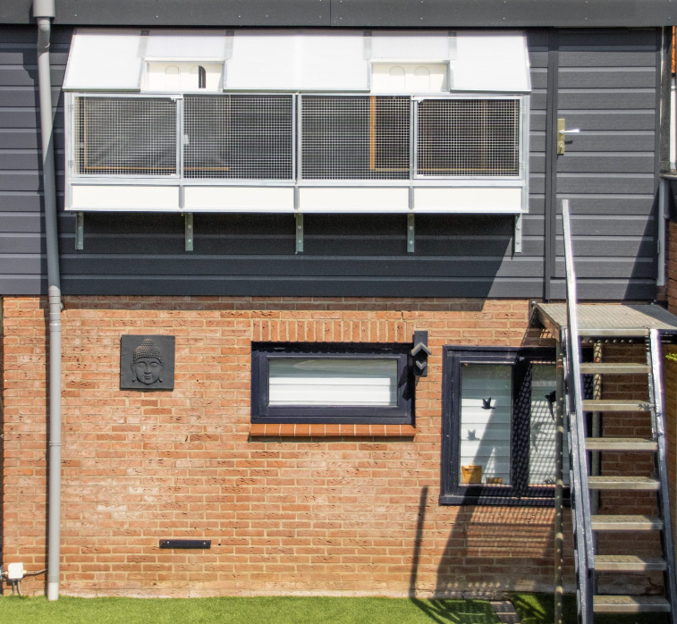 De kleine achtertuin werd volledig onder handen genomen om de beestjes van onderdak te kunnen voorzien en hetgeen dat begon als hobby, mondde al snel uit in een waar duivenparadijs.